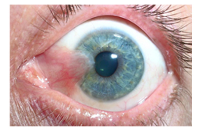 Se presenta como una zona elevada blanquecina en el borde interno y/o externo de la córnea. Es indoloro y los síntomas dependen principalmente del tamaño de la lesión. Los más pequeños pueden ser asintomáticos, pero a medida que crecen pueden generar molestias en la superficie del ojo como: